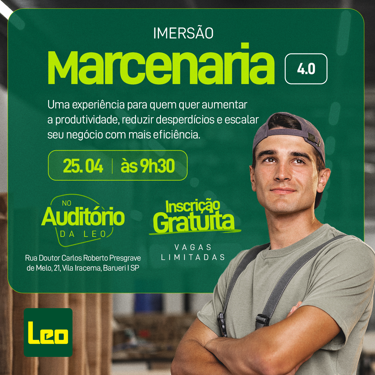 A Escola da Marcenaria é uma unidade de negócio do ecossistema Leo Madeiras, que existe desde 2004 com o propósito disseminar conhecimento, capacitar e desenvolver o mercado da marcenaria gerando emprego e renda.